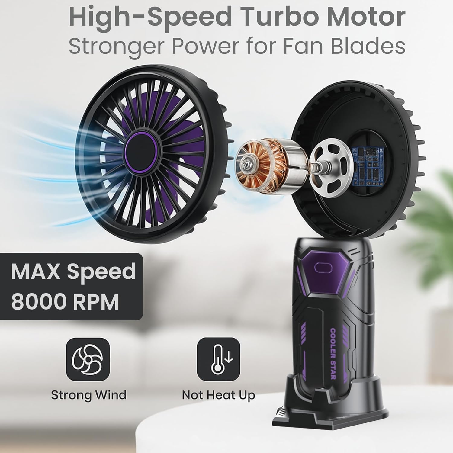 A powerful portable fan with long battery life and USB charging. Ideal for outdoor use, travel and smart cooling needs.