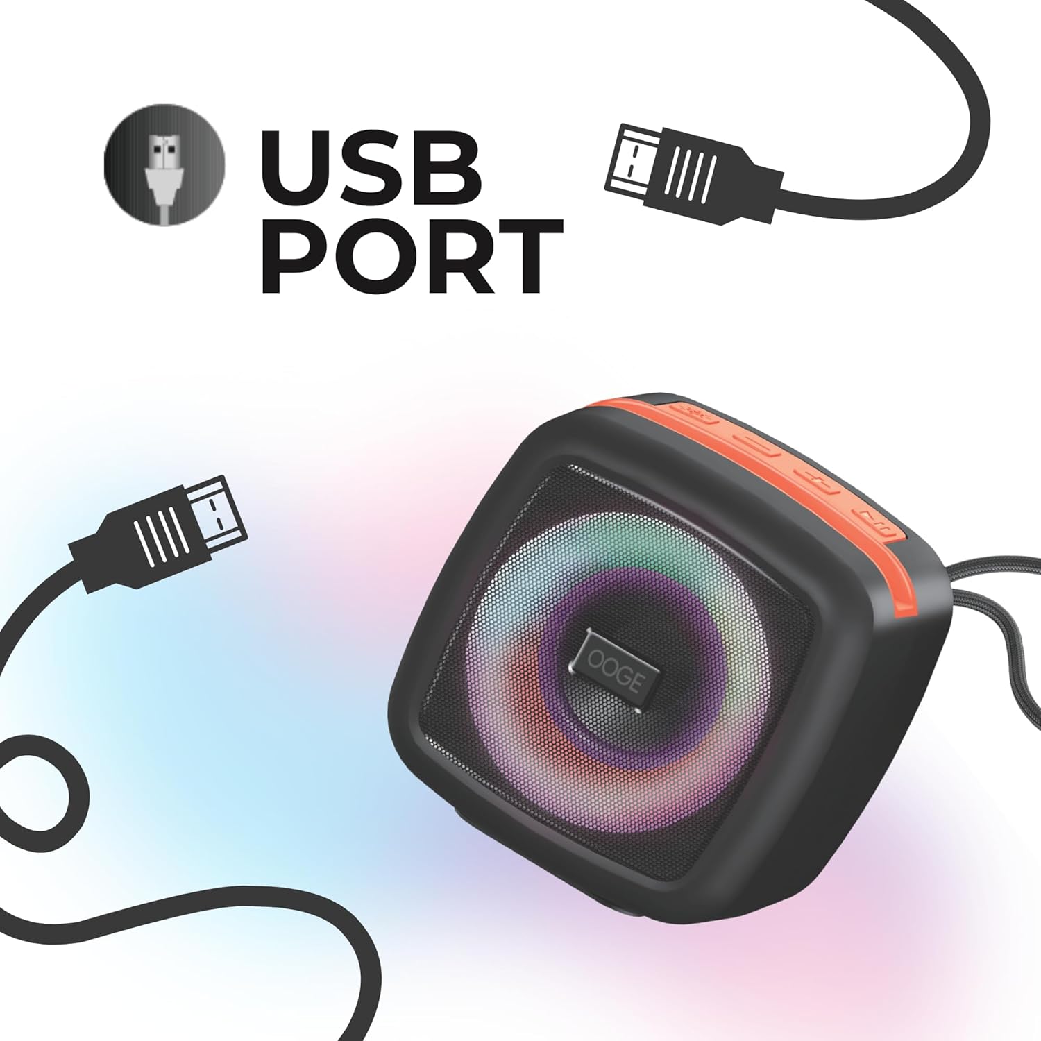 OOGE Vibebox 1000 Bluetooth Speaker | 7W Wireless Speaker with AUX & USB Port | RGB Lights | Type-C Charging | Bluetooth 5.3 | Deep Bass | Compact & Stylish | Black